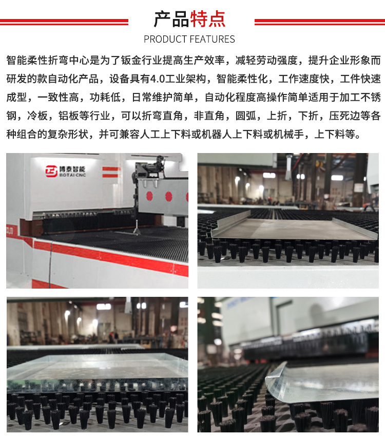 柔性折彎機是一種能夠對薄板進行折彎的機器,其結構主要包括支架、工作臺和夾緊板,工作臺置于支架上,工作臺由底座和壓板構成,底座通過鉸鏈與夾緊板相連,底座由座殼、線圈和蓋板組成,線圈置于座殼的凹陷內,凹陷頂部覆有蓋板。使用時由導線對線圈通電,通電后對壓板產生引力,從而實現對壓板和底座之間薄板的夾持。由于采用了電磁力夾持,使得壓板可以做成多種工件要求,而且可對有側壁的工件進行加工,操作上也十分簡便。從目前來看,數控柔性折彎機系統的發展趨勢主要體現在性能、功能以及體系結構這三個方面,具體的表述為: