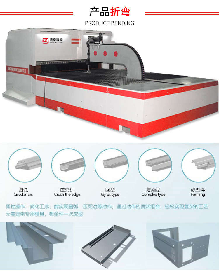 多軸聯動加工,零件在一臺數控折彎機機床上一次裝夾后,可進行自動換刀、旋轉主軸頭、旋轉工作臺等操作,完成多工序、多表面的復合加工,不僅光潔度高,而且效率也大幅度提高。